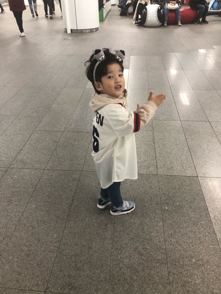 티켓준 삼촌한테 감사하는 마음으로 이쁜 표정 지어보라고 하니까